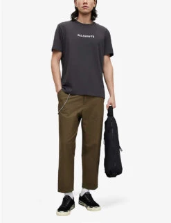 - Relaxed-fit, low-rise, structured waistband, branded button at front, two slip pockets at front with one coin pocket, two patch pockets at back