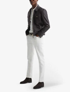 - Regular fit, spread collar, long sleeves, brand patch at sleeve, buttoned cuffs, two buttoned flap pockets at chest, two slip pockets at front, branded hardware, dipped hem at back, fully lined