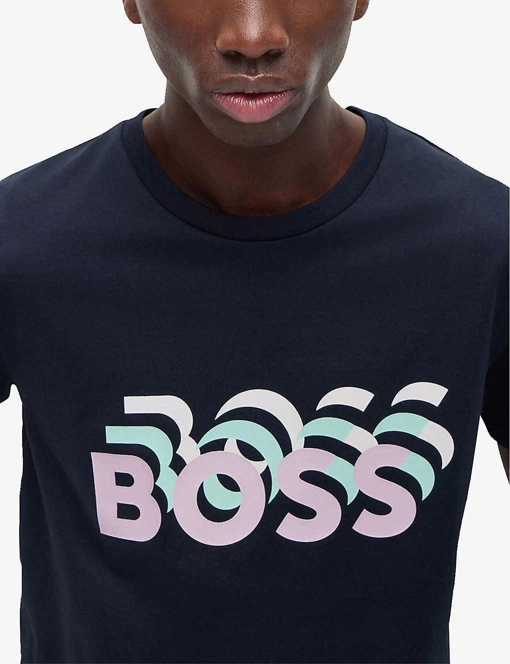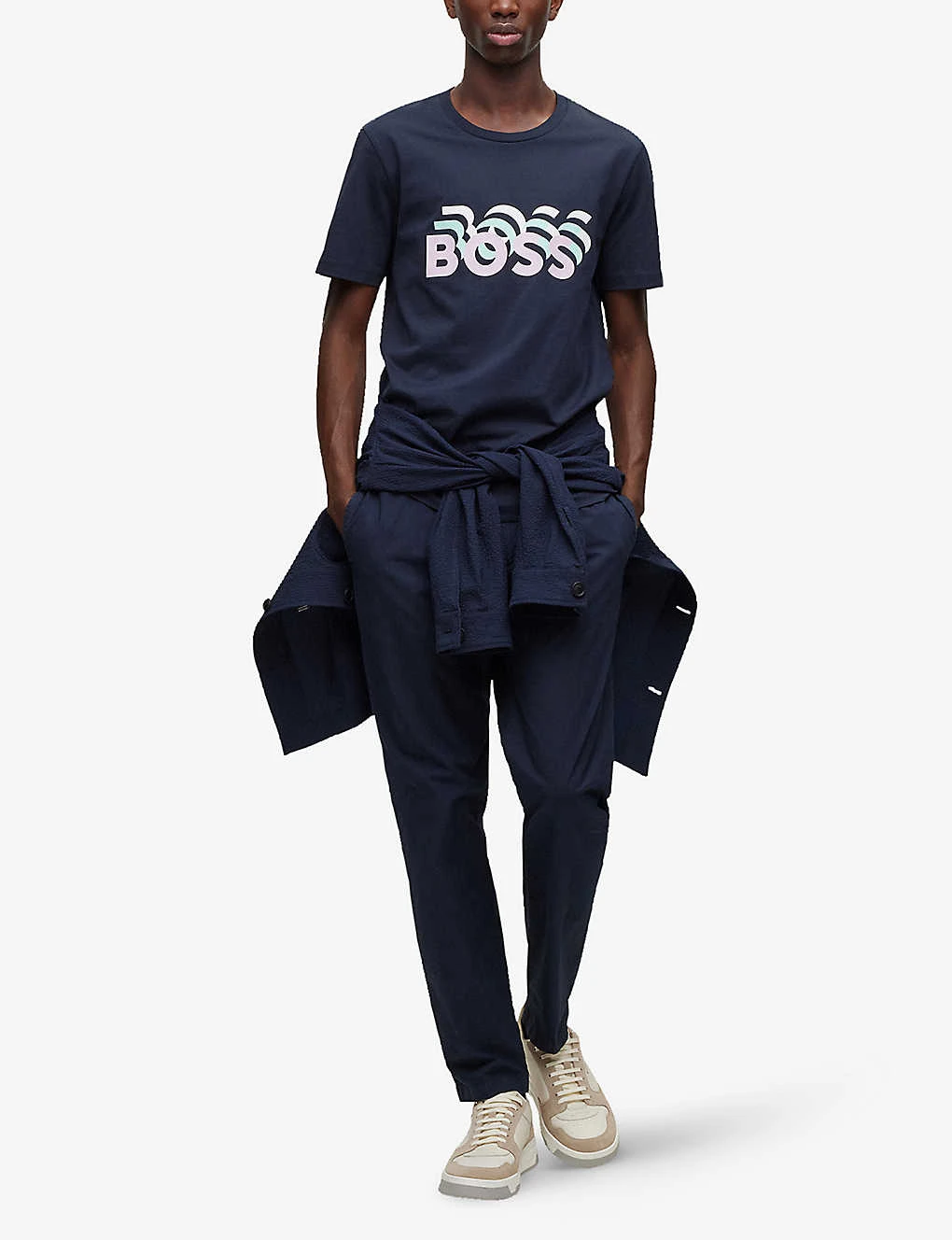 Boss Brand-print Ribbed-trim Cotton T-shirt