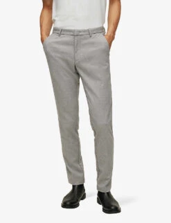 Boss Logo-embellished Slim-fit Straight-leg Stretch-cotton Trousers