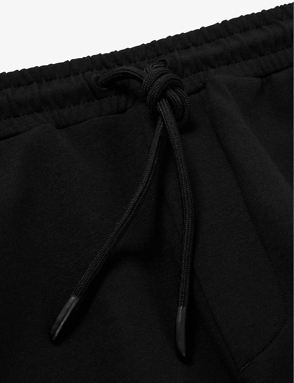 - Regular-fit, mid-rise, drawstring waist, elasticated cuffs, side seam execution, hidden back pocket, metallic embroidered logo at leg