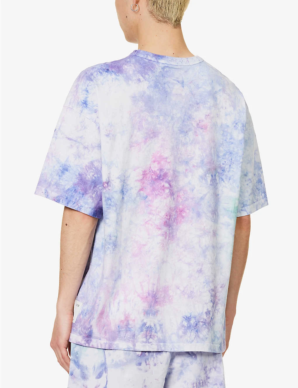 - Boxy fit, crewneck, ribbed trim at neck, short sleeves, brand appliqué at sleeve, brand patch at front, all-over tie-dye pattern