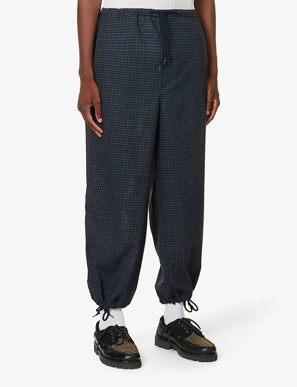 Check-print Drawstring Mid-rise Wide-leg Wool Trousers