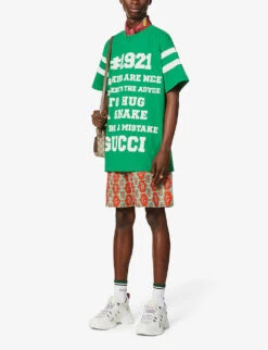 - Regular fit, crewneck, ribbed trim at neck, short sleeves, two brand appliqués at chest