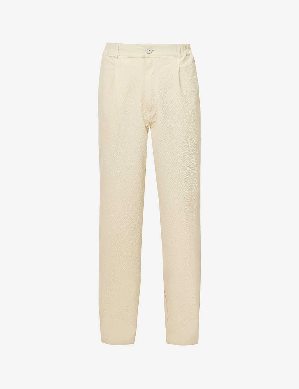 Cosmic Seersucker-texture Straight-leg Relaxed-fit Stretch-cotton Trousers