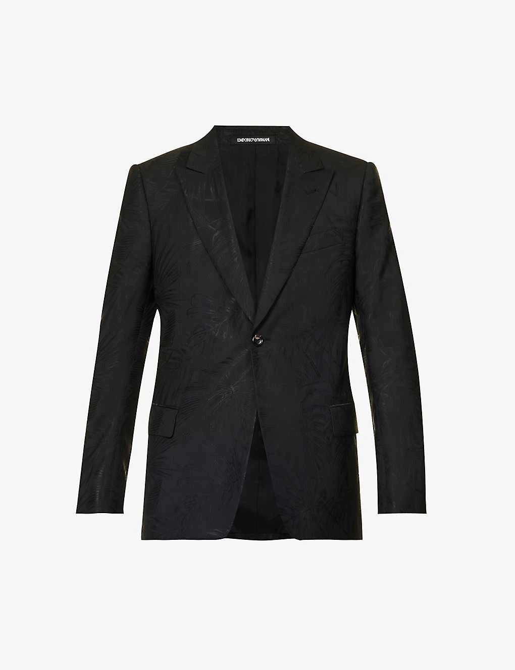 Emporio Armani Floral-jacquard Single-breasted Wool-blend Jacket