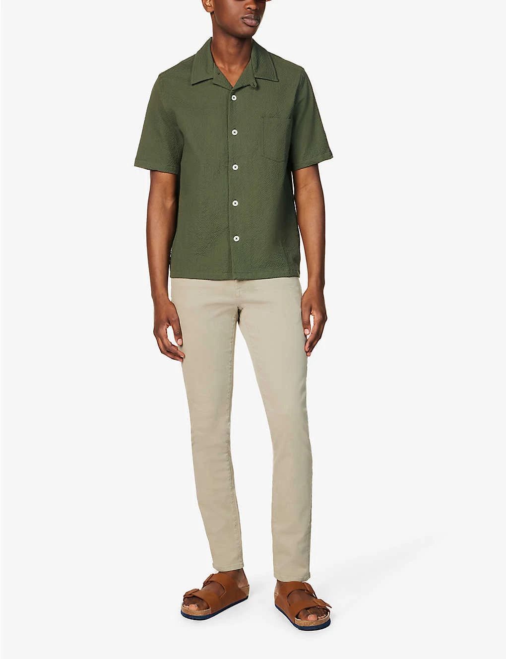 - Exposed button and concealed zip-fly fastenings at front
