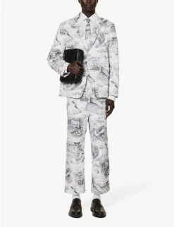 - Regular fit, notched lapels, padded shoulders, long sleeves, buttoned cuffs, welt pocket at chest, darts at front, two patch pockets at front, vent at back, all-over contrast panels, soft-brushed texture, three slip pockets at interior, fully lined