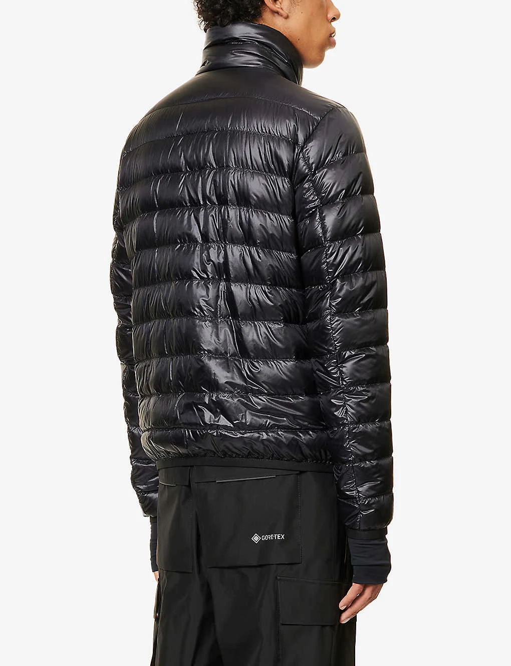 - Regular fit, funnel neck, long sleeves, branded patch at sleeve, elasticated thumbhole cuffs, two zipped pockets at chest, two zipped pockets at sides, branded hardware, all-over quilted padding