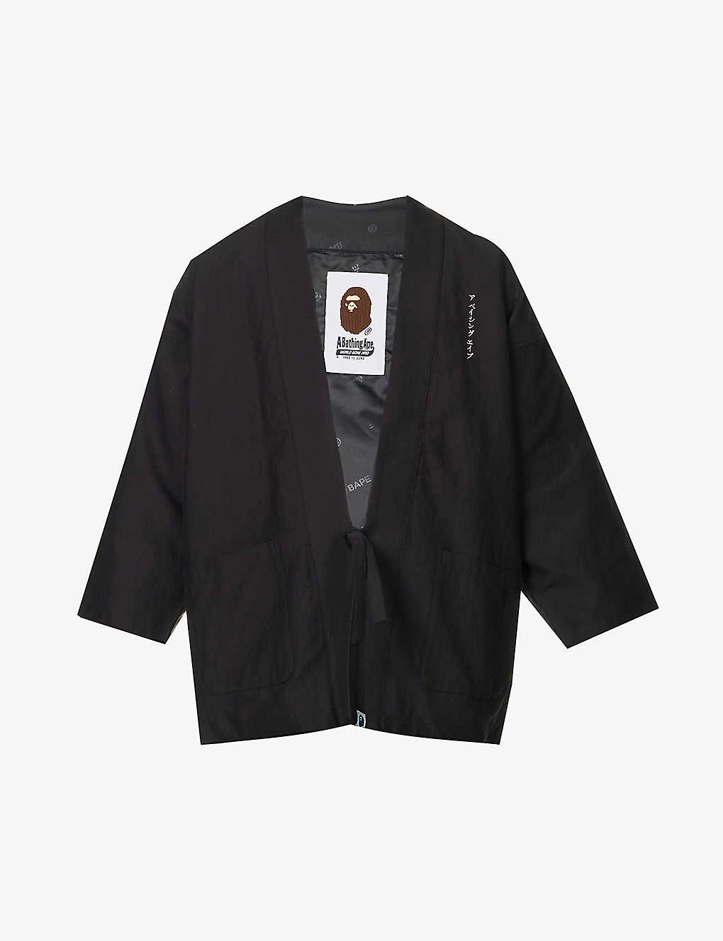 Japanese Culture Graphic-appliqué Cotton And Paper-blend Kimono Jacket