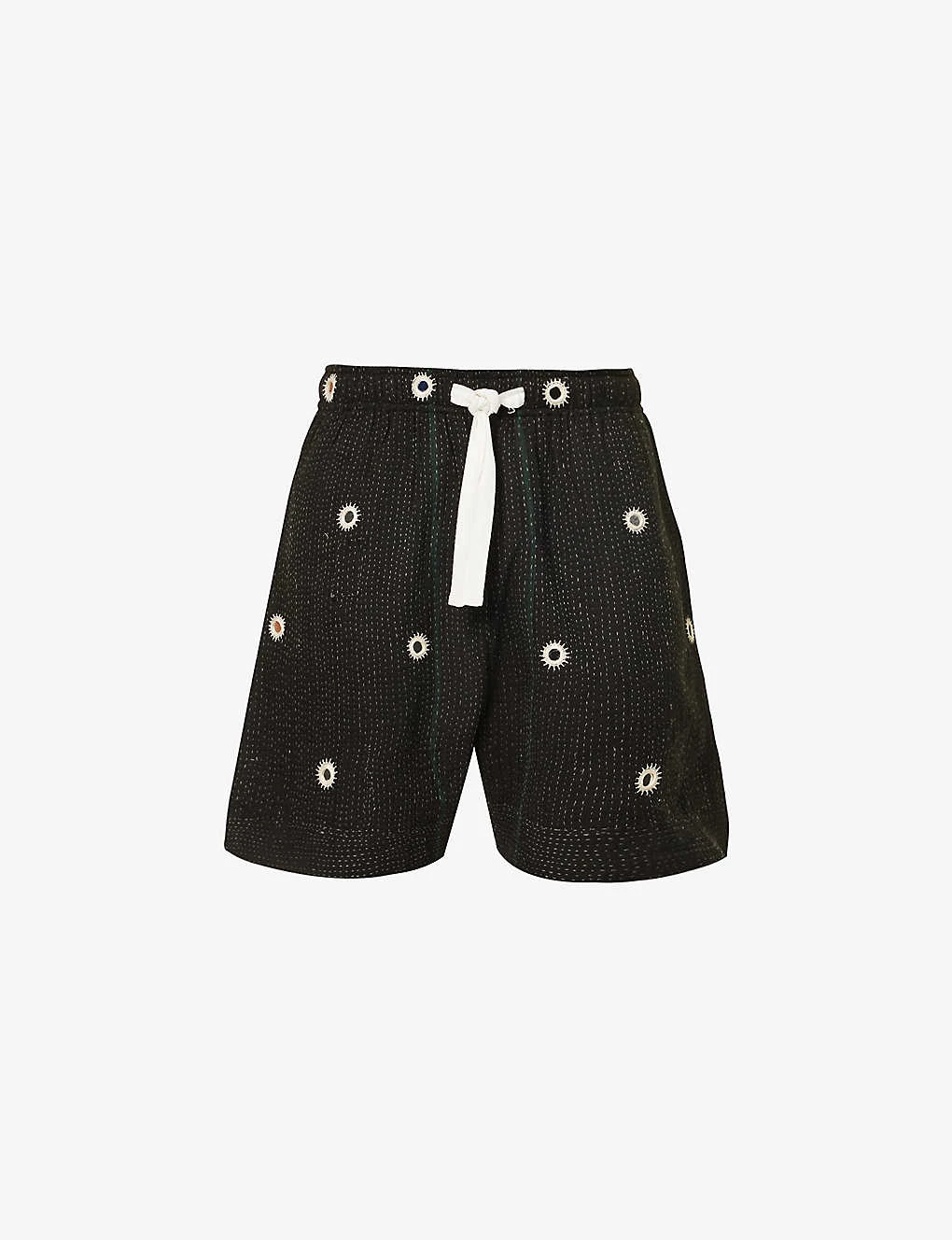 Kantha-stitch Mirror-embroidered Relaxed-fit Upcycled-cotton Shorts