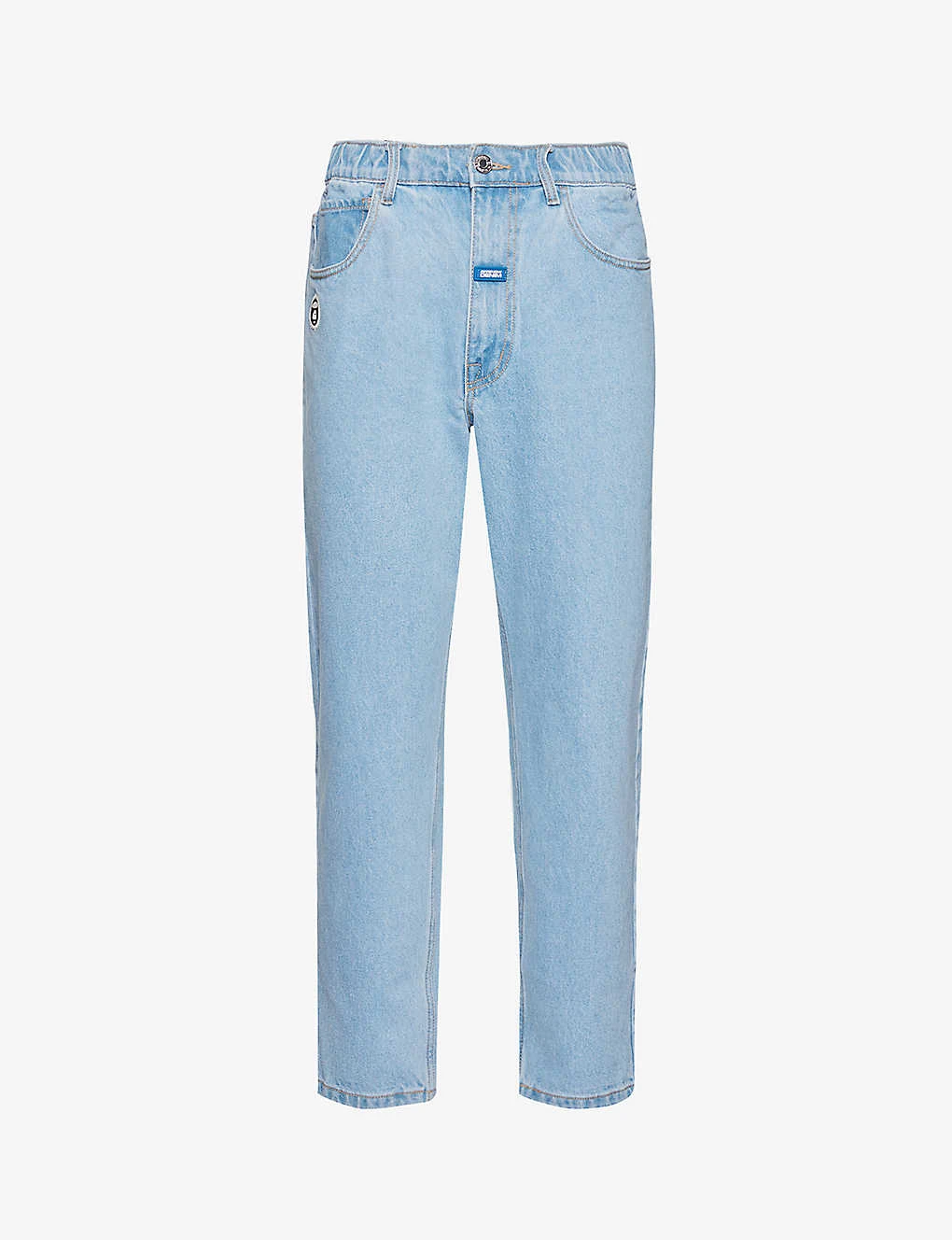 - Regular fit, mid-rise, straight leg, belt loops, five pockets, two brand appliqués at front, brand patch and embroidery at leg, embroidered branding at back, contrast stitching