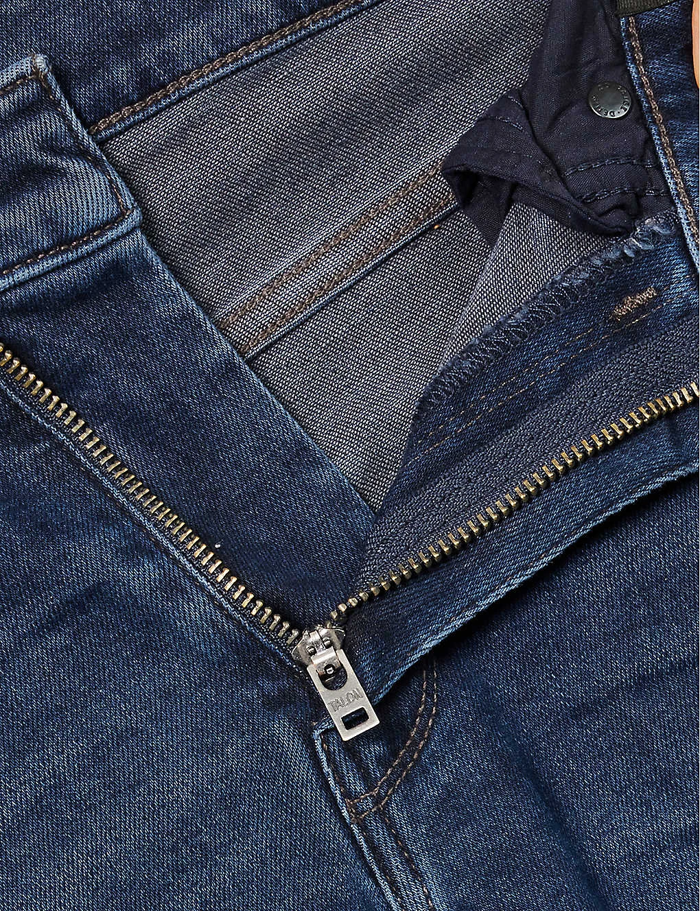 - Slim fit, mid-rise, straight leg, belt loops, five pockets, brand patch at back, partially lined