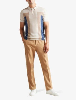 - Regular fit, mid-rise, tapered leg, belt loops, two slip pockets at front, pressed centre creases, darts at back, two welt pockets at back, partially lined, cuffed hems