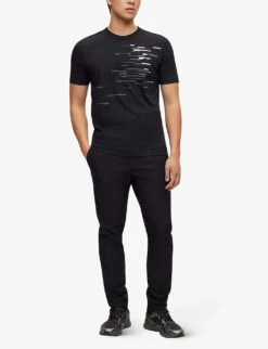 - Regular fit, crewneck, contrast ribbed trim at neck, short sleeves, embroidered branding at chest, all-over stripe pattern