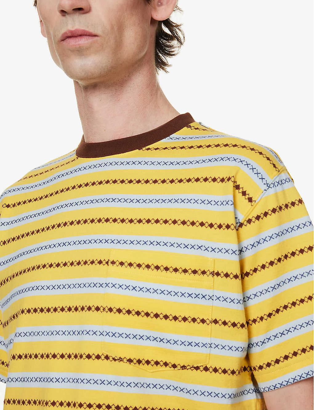 - Regular-fit, crewneck, ribbed trim at neck, short sleeves, patch pocket at chest, all-over striped pattern