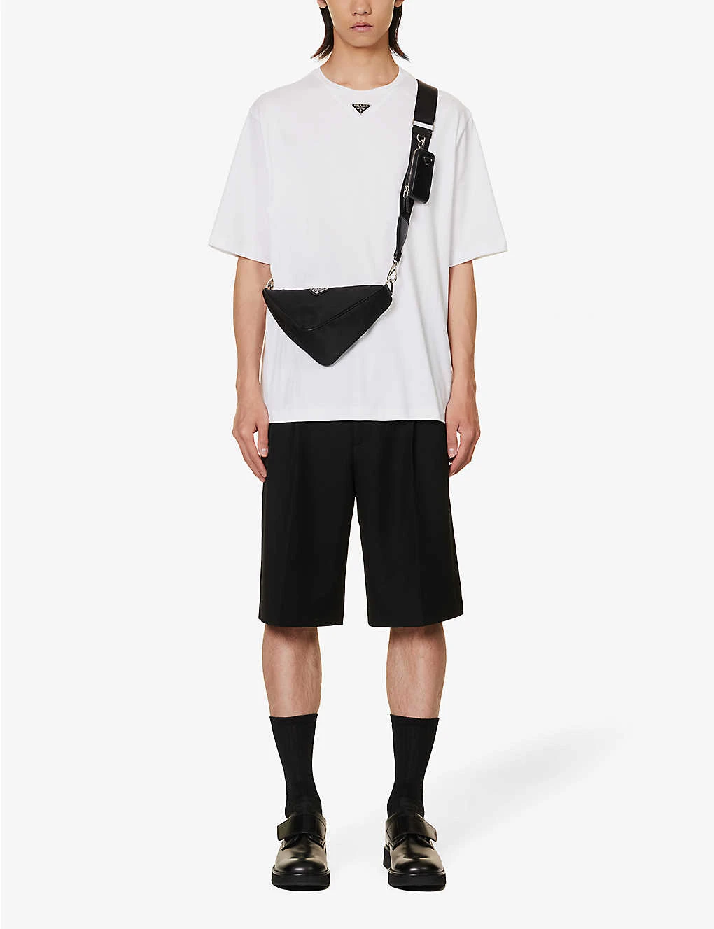 - Relaxed fit, crew neck short sleeves, triangle brand plaque at front, straight hem