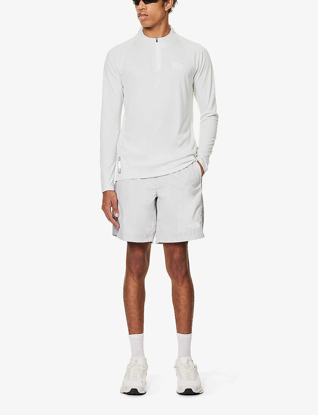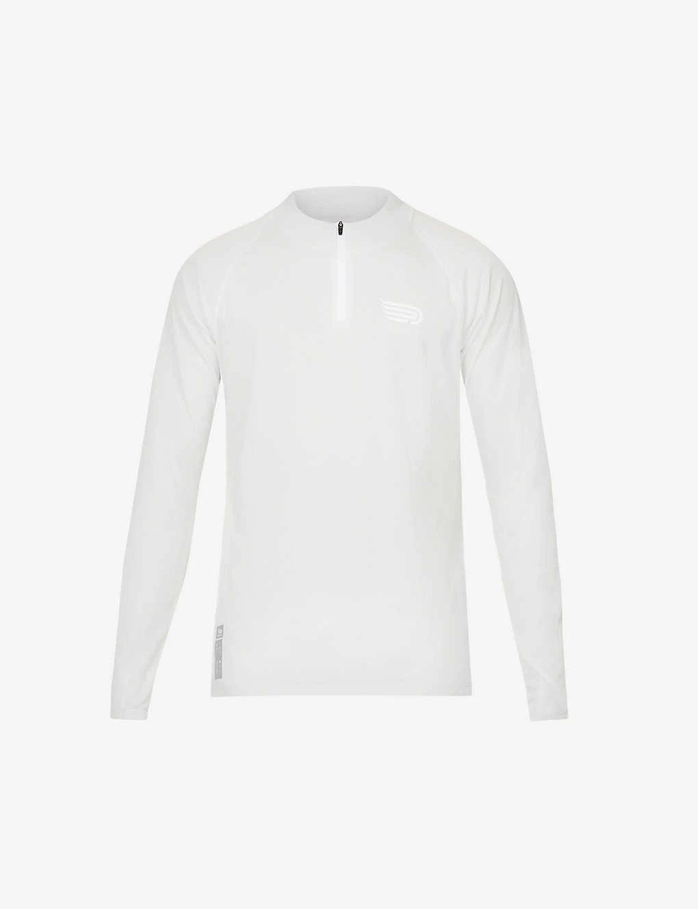 - Relaxed fit, stand collar, long sleeves, brand print at front and back, moisture control