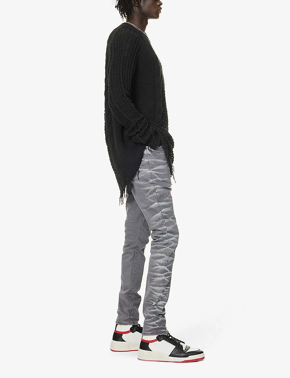 - Slim fit, low rise, slim leg, belt loops, five pockets, faded wash, branded silver-toned hardware, branded patch at back