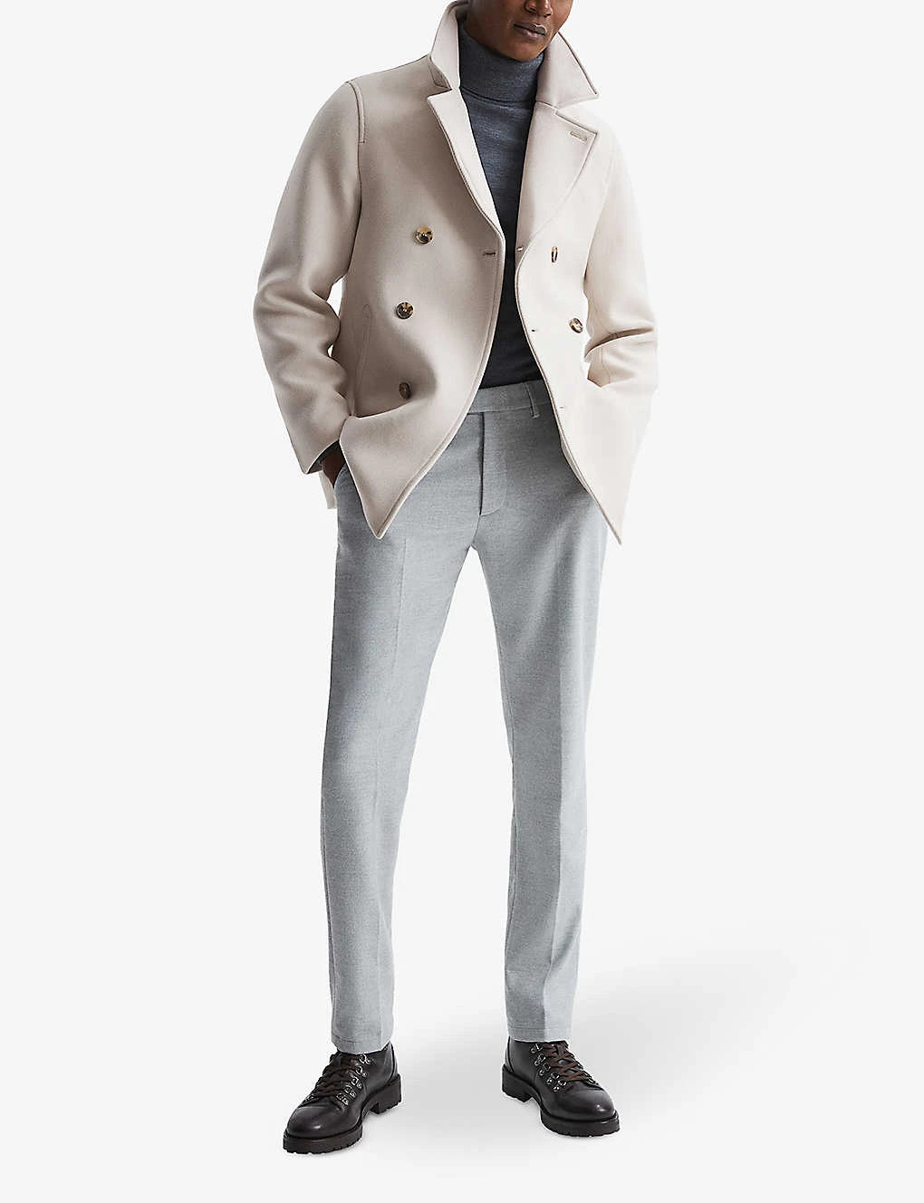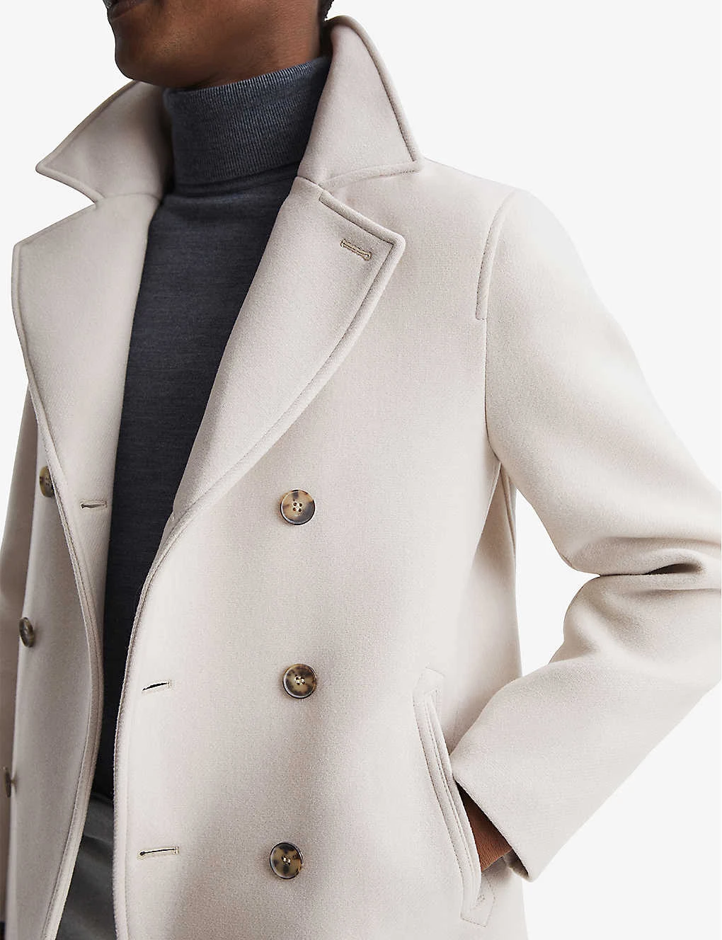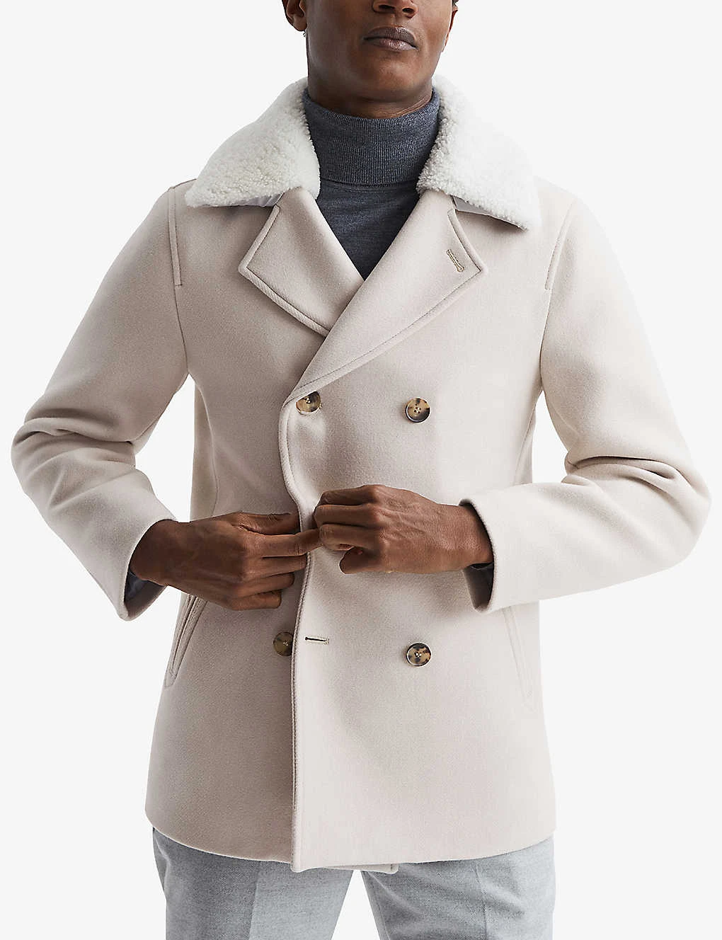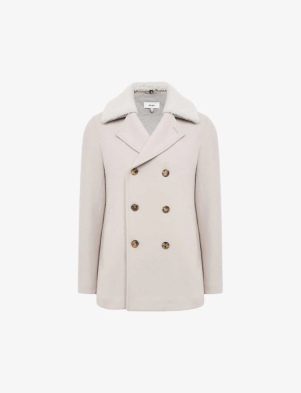 Reiss Wind Shearling-collar Wool-blend Pea Coat