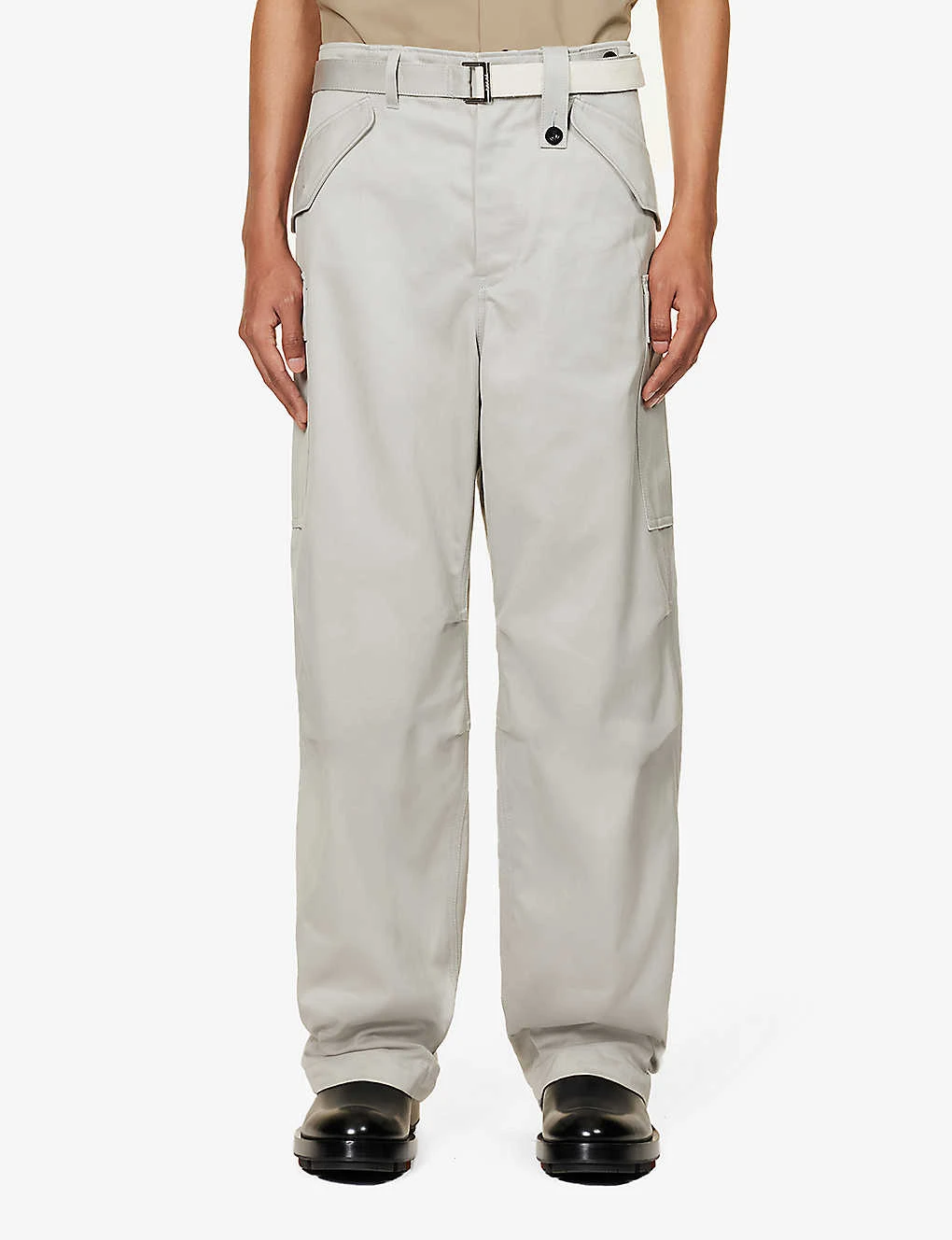 Sacai Flap-pocket Regular-fit Wide-leg Cotton-twill Trousers
