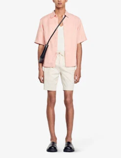 Sandro stretch-denim jeans Exposed button and concealed button-fly fastening at front Regular-fit, tapered, mid-rise, contrast stitching, belt loops, five pockets, branded silver-toned hardware, branded leather patch at back waistband, v-shaped yoke at back 99% organic cotton, 1% elastane Machine wash Size 32: Rise 10″”, inside leg 30″”, leg opening 14″” Model is 6ft and wears a size 32