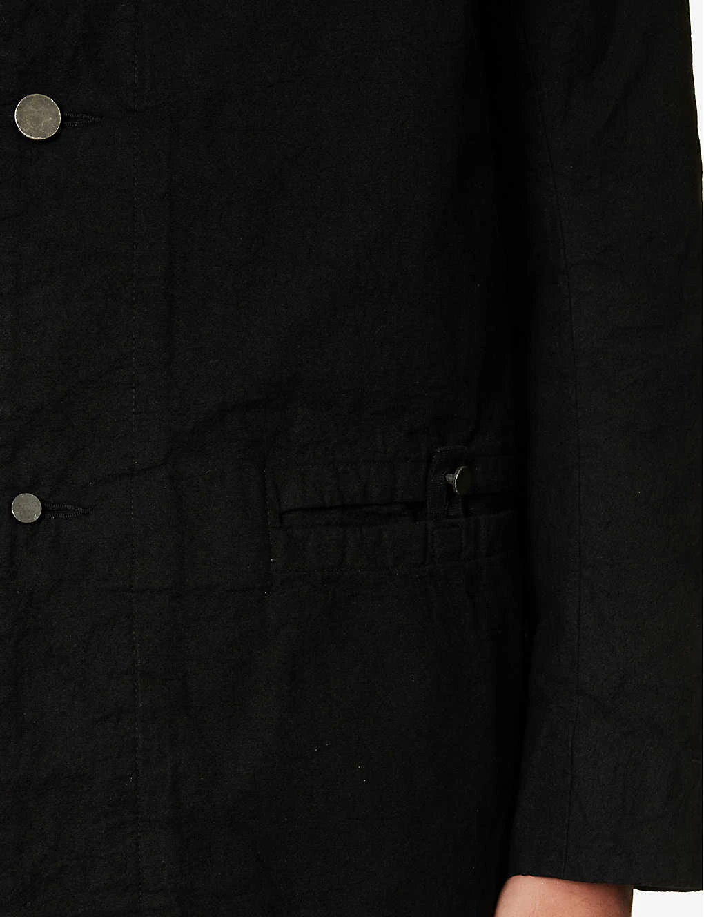 - Exposed button fastenings at front
