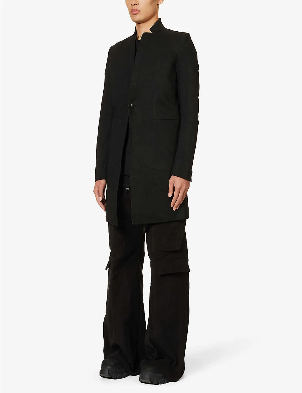 - Regular fit, stand collar, long sleeves, buttoned cuffs, two slip pockets at sides, single vent at back
