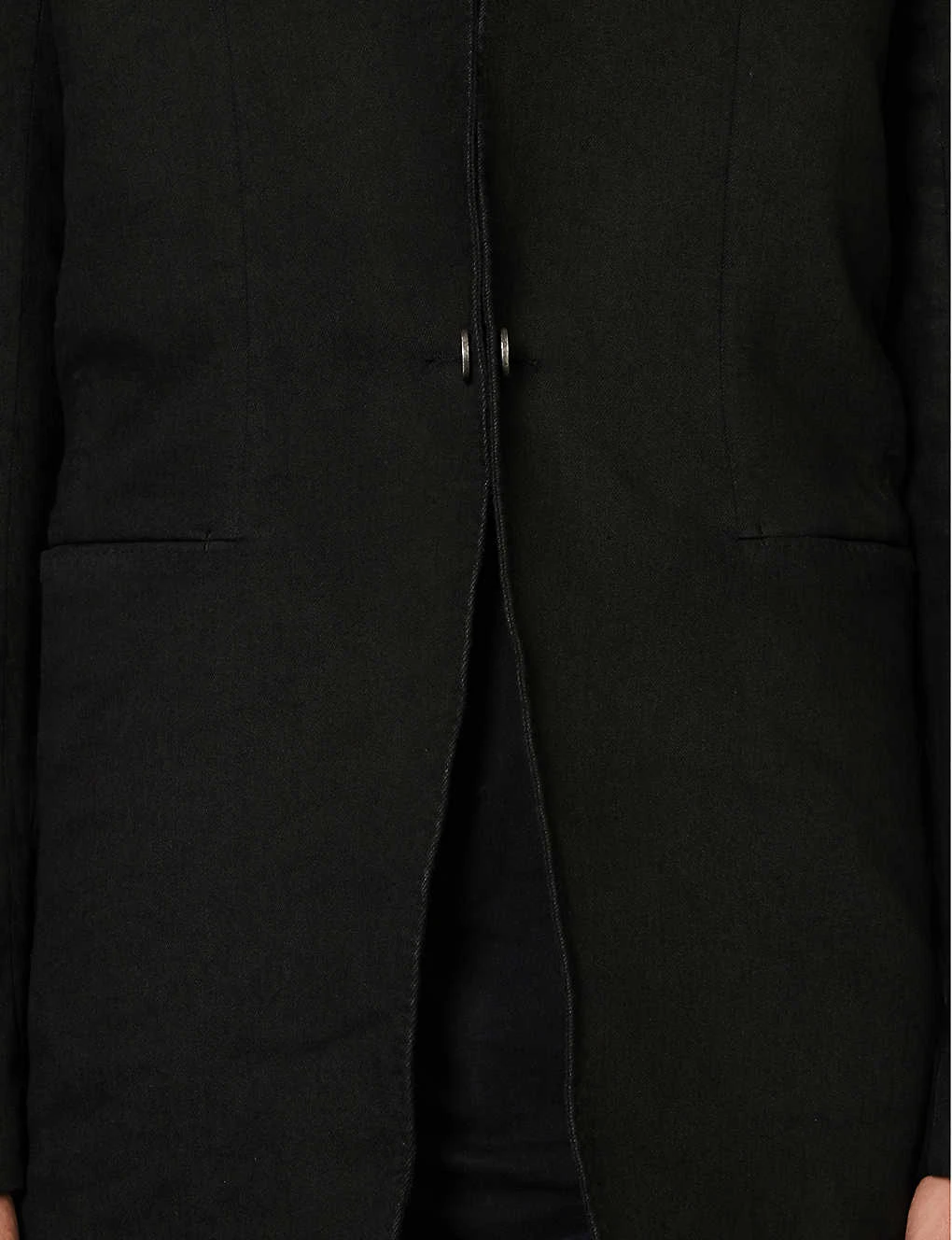 - Exposed button fastenings at front