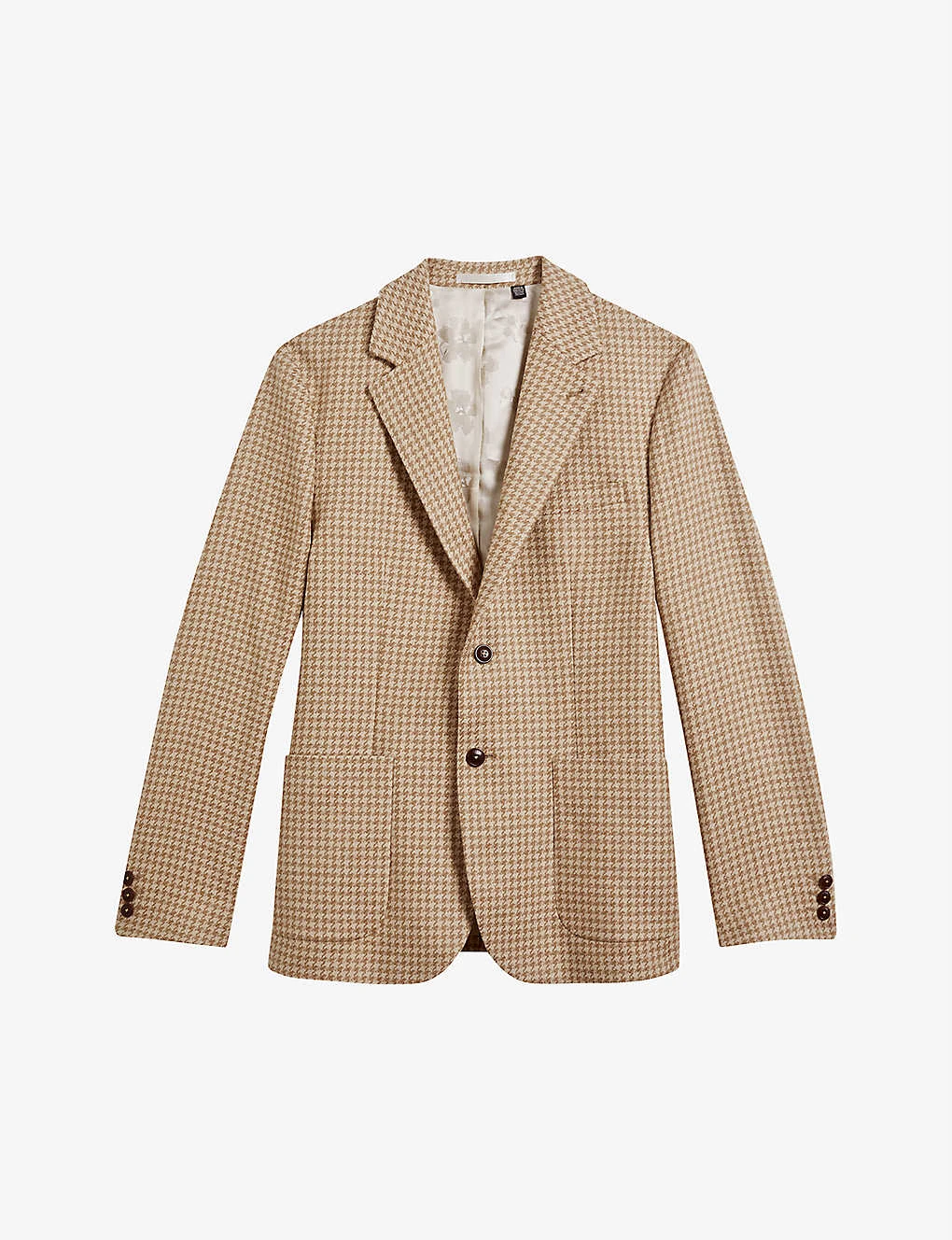 - Slim fit, notch lapels, long sleeves, all-over dogtooth pattern, single breasted front, welt pocket to the chest, two patch pockets to the front, buttoned cuffs, fully lined