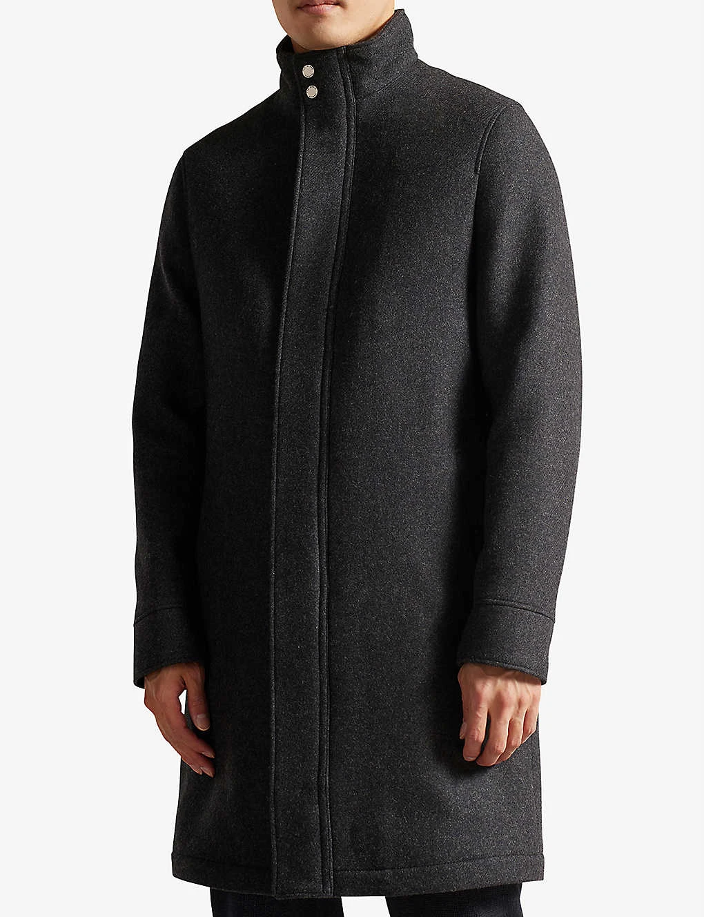 Ted Baker Icomb Funnel-neck Recycled-wool Blend Coat