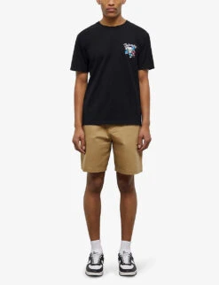 - Straight fit, mid rise, belt loops, five pockets, brand patch at back, all-over contrast top stitching, all-over bleached effect