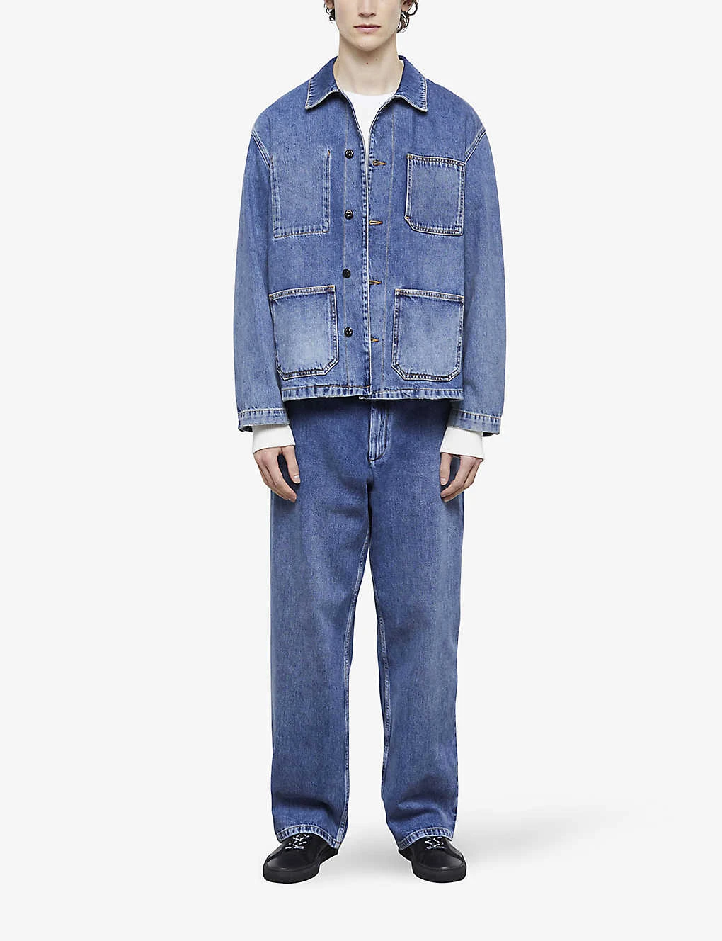 - Collar, long sleeves, button fastening, patch pockets, faded wash