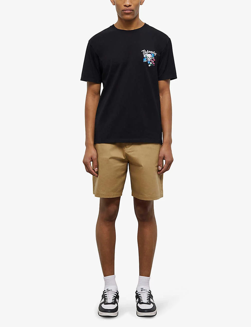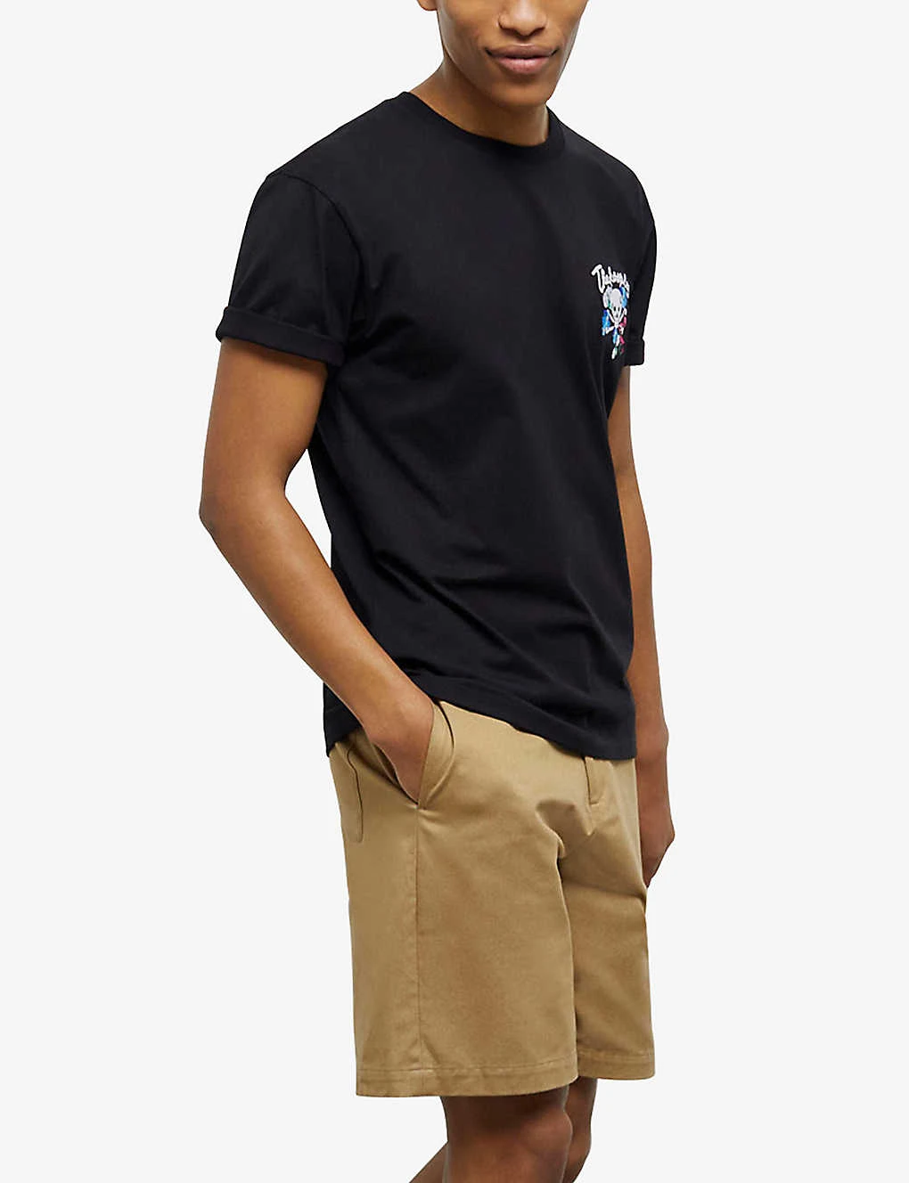 - Crew neck, short sleeves, skull print logo at chest, ribbed trims and cuffs